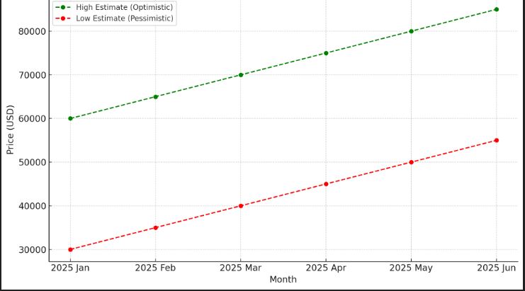 - 낙관적 전망: 비트코인 가격이 2025년 상반기 동안 40,000달러에서 70,000달러 사이로 상승할 가능성도 존재합니다. 이는 기업들의 비트코인 채택 증가, 더 많은 국가들이 비트코인을 법정 화폐로 인정하려는 시도에 의해 촉발될 수 있습니다.
